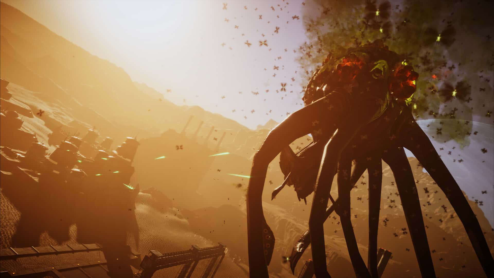 《Silica》在巴尔塔鲁星的荒漠战场中展开人类与外星文明的生存对决。玩家可自由切换微观士兵视角与宏观指挥官模式,驾驶陆空载具实施立体突袭,或运筹帷幄调度资源建立前线基地,在动态天气与真实物理碰撞的沙盒环境中,体验从单兵渗透到百人军团攻防的跨维度战场指挥艺术。